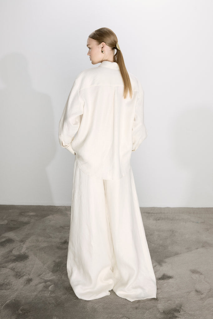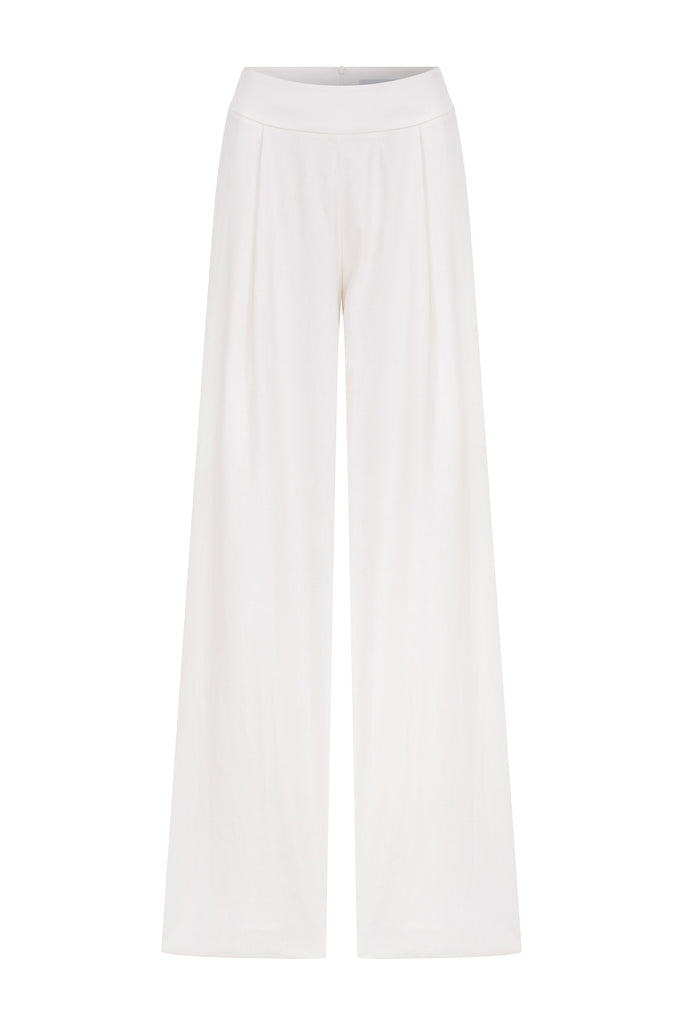 Mui Geniş Paça Keten Pantolon Beyaz