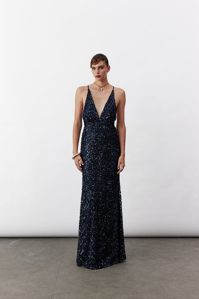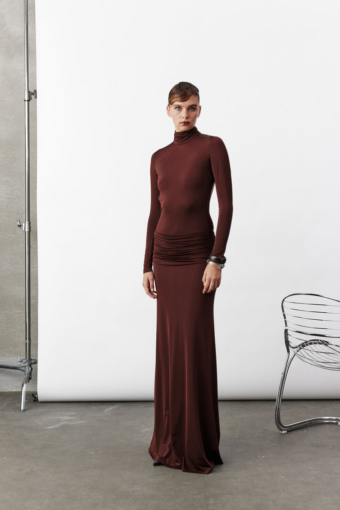 Venüs Tek Omuz Uzun Elbise Kahverengi