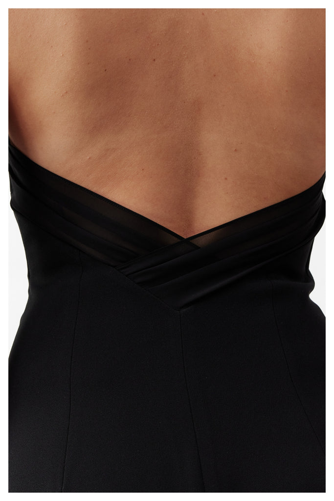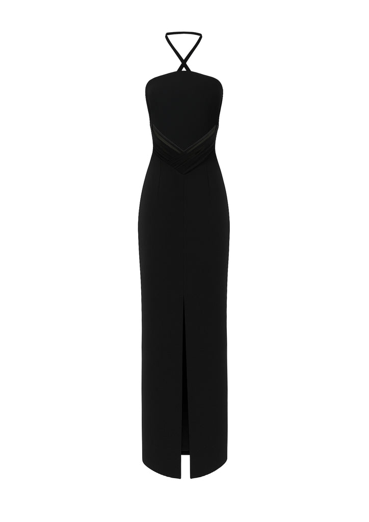 Violette Midi Krep Elbise, üçgen formundaki ön yaka detayı ve boyundan bağlanan tasarımıyla öne çıkar. Arka sırttaki şifon detayı zarif ve dikkat çekici bir dokunuş katarken, krep kumaşı saten astar ile tamamlanmıştır. Vücudu saran yapısı silüeti güçlü bir şekilde vurgularken, midi boyu ile daha sofistike bir görünüm sunar.