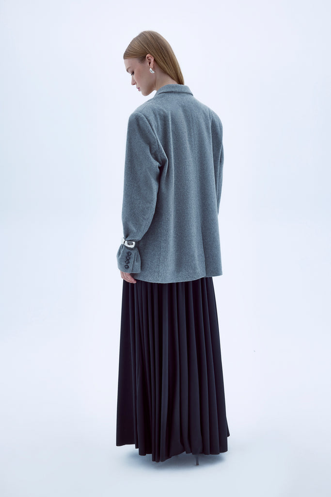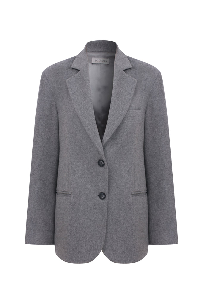 Gri yün kumaşı ve saten astarıyla sofistike bir dokunuş sunan Boxy yün blazer, hafif oversize kesimiyle modern ve rahat bir görünüm sağlıyor. Hem şıklığı hem de kullanışlılığı bir araya getiren bu blazer, tarz sahibi bir duruş için mükemmel bir parça.