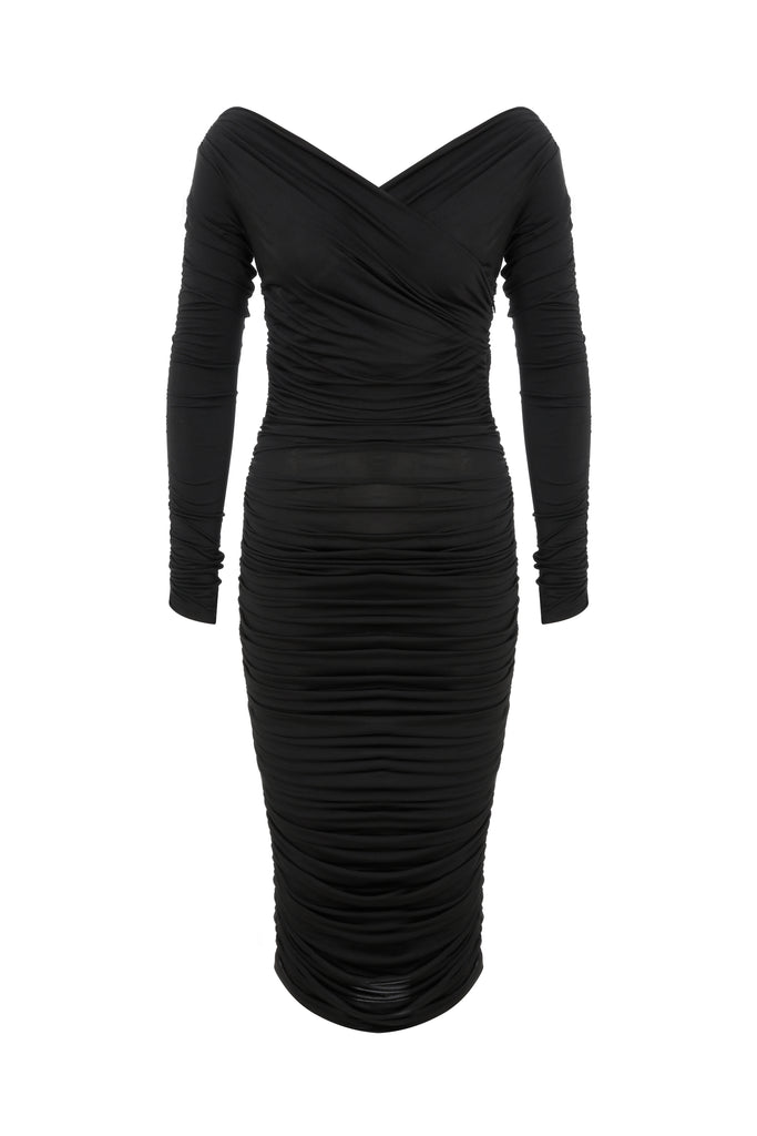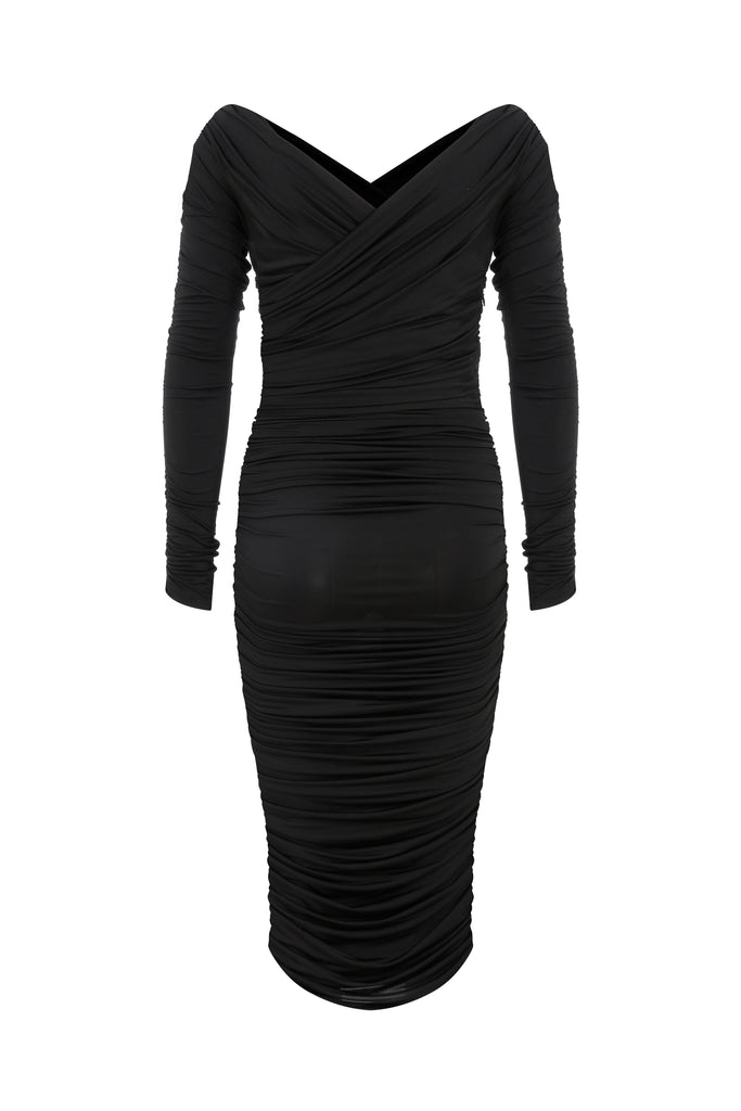 Jilou Drapeli Jarse Midi Elbise Siyah