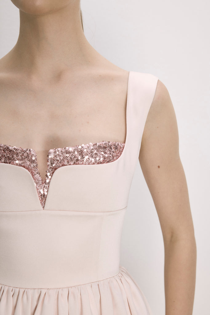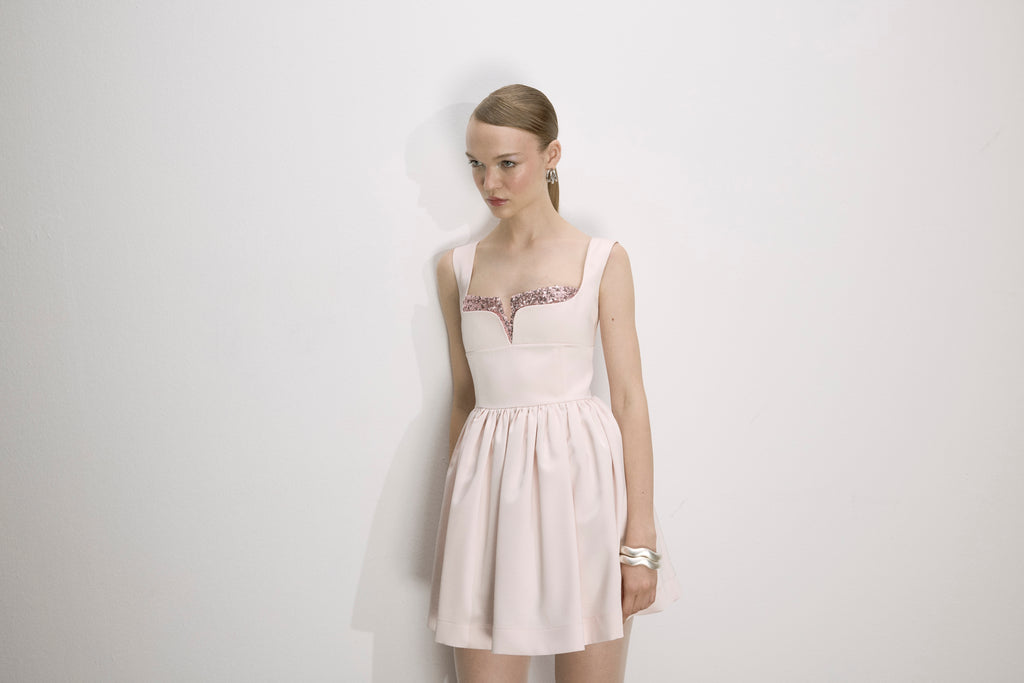 Leanne Mini Elbise, hacimli eteği ve göz alıcı payet detaylı üst kısmıyla şıklığın tanımını yeniden yapıyor. Mini kesimi, özel davetler ve büyüleyici geceler için ideal bir seçim sunarken, zahmetsiz bir sofistike görünüm elde etmenizi sağlar.