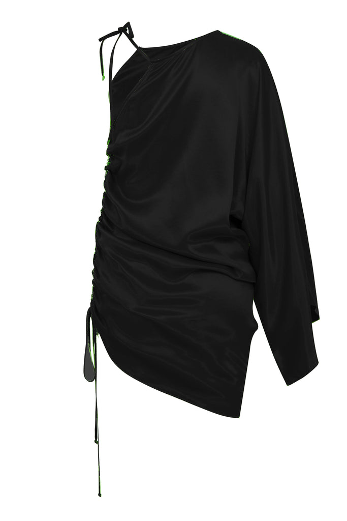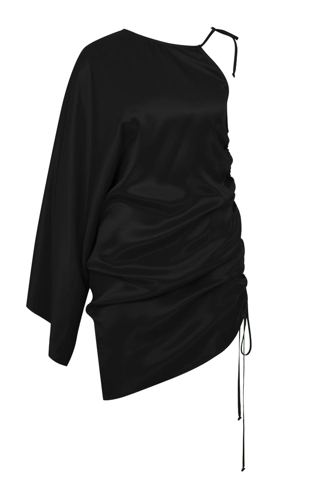 Rocha Asimetrik Saten Mini Elbise Siyah