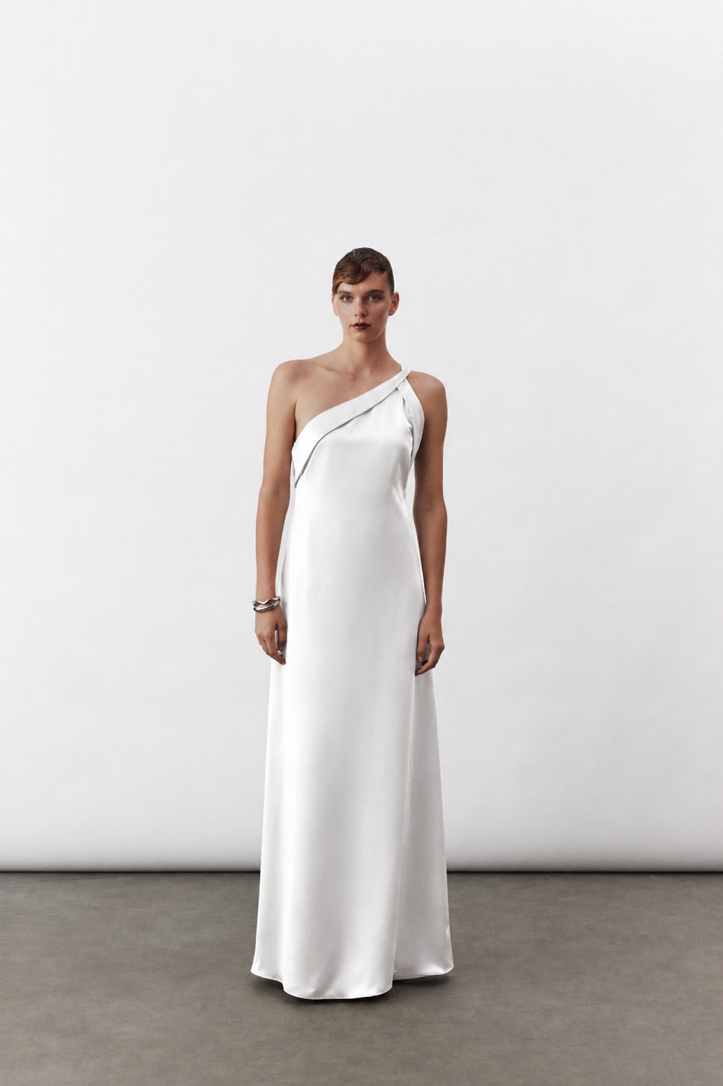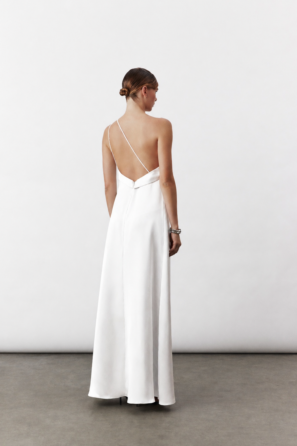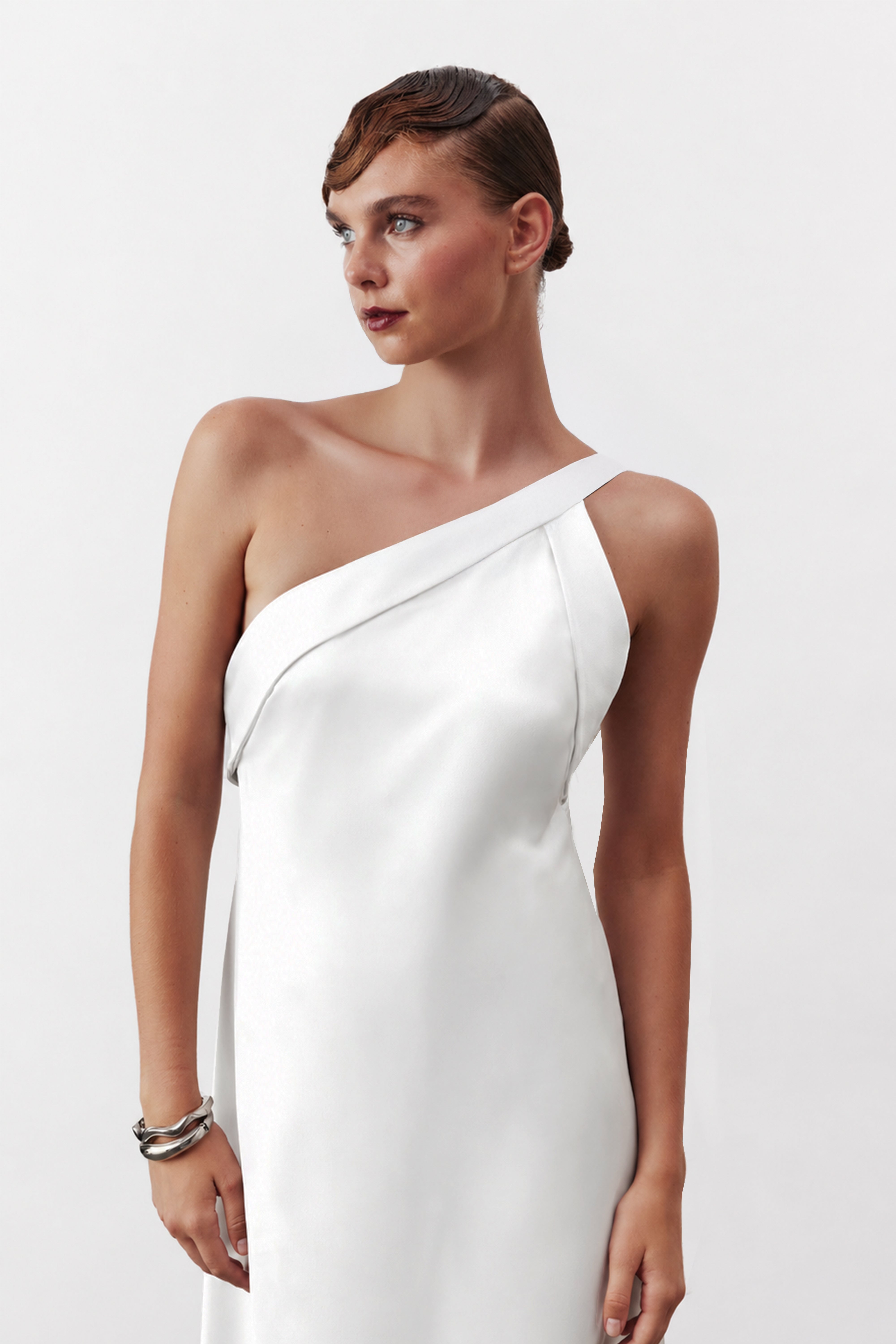 Aimee Uzun Saten Elbise Beyaz