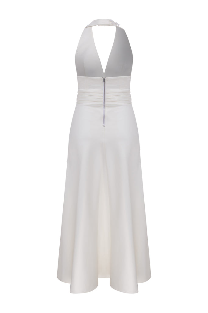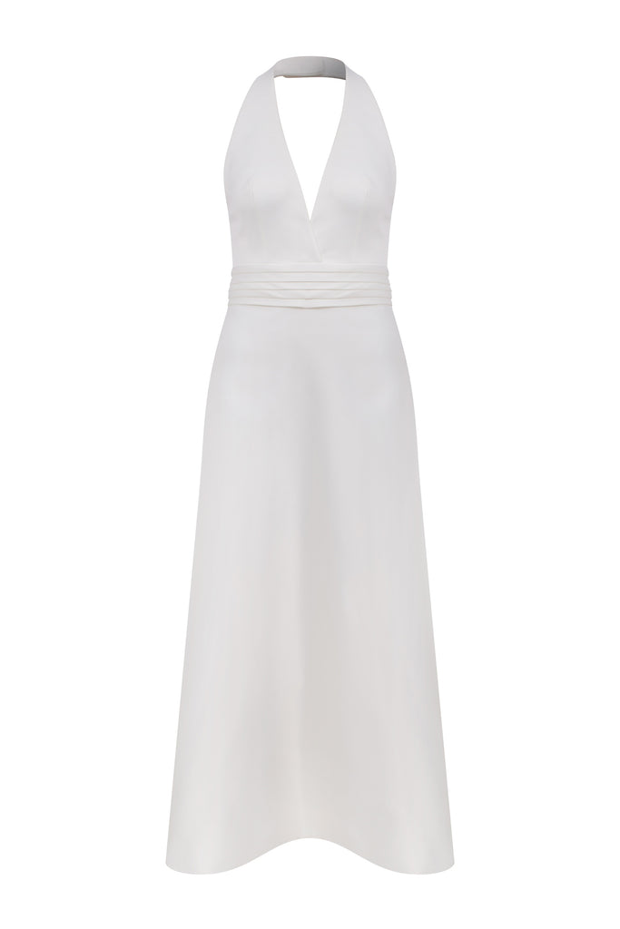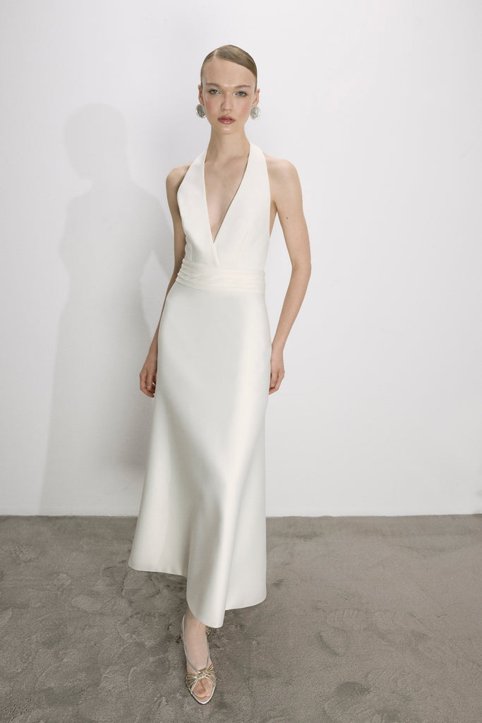Lauryn Midi Elbise, vücut hatlarınızı zarif bir şekilde vurgulayan şık bir V yaka ve sırt tasarımına sahiptir. Beldeki pileli korse, belinizi ortaya çıkararak şık bir görünüm sağlar. Mat saten kumaştan üretilmiştir.