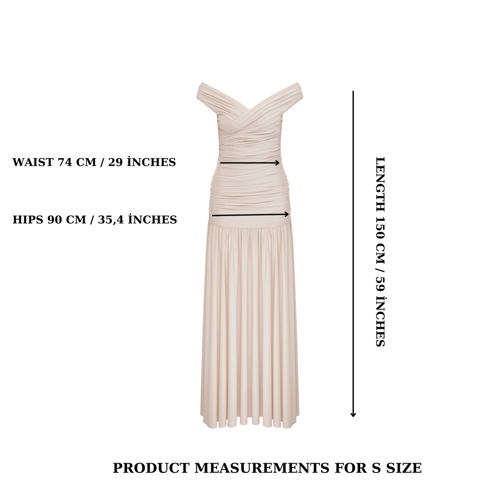 Purley Elbise, göğüs altından kalçaya kadar uzanan büzgülü yapısıyla öne çıkar. Göğsü ve vücudu saran kalıbıyla tam oturur ve şıklık vurgusunu ön plana çıkarır. Oldukça zarif ve şık bir görünüm sunan bu elbise, her türlü özel etkinlik ve davet için mükemmel bir seçenektir.