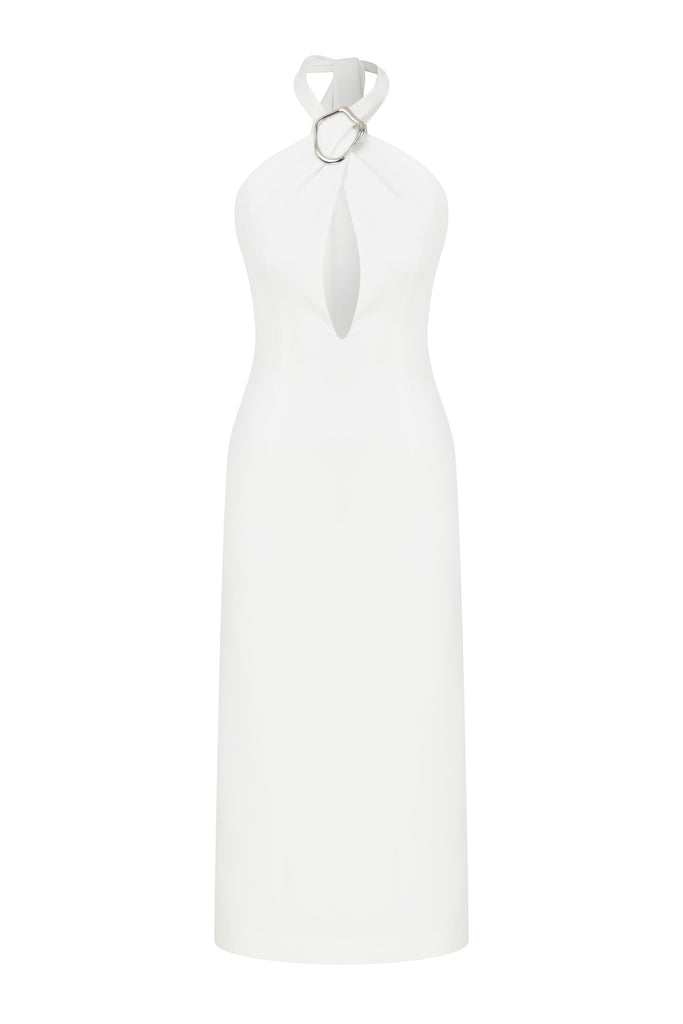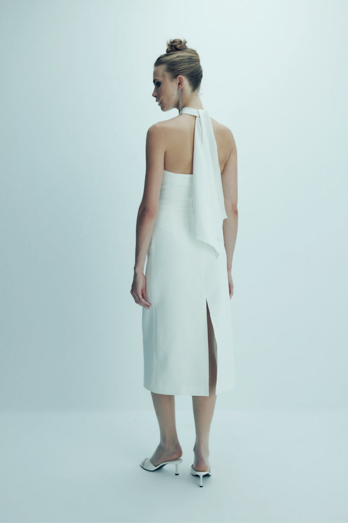 Viana Krep Midi Elbise Beyaz