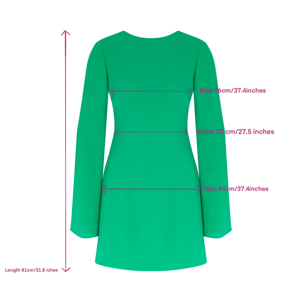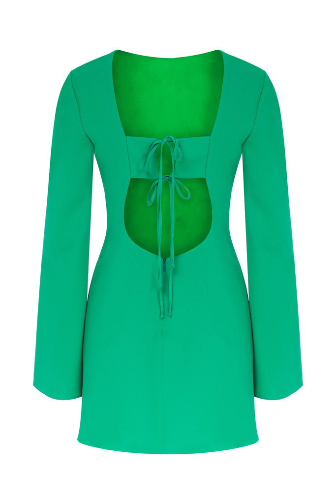 Nazlı Ceren, Ira elbisenin açık sırtıyla çekici bir ruh haline dokunuyor. Yuvarlak yaka, uzun kollar, bele oturan rahat kesim ve hafif A kesim etekle zevkli bir şekilde dengeleniyor. Özel akşamlar için süslemeli aksesuarlar ve yüksek topuklu sandaletlerle kombinleyebilirsiniz.