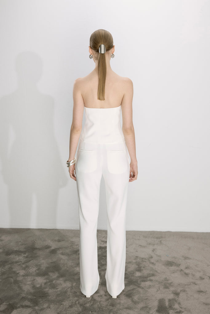 Odyle Krep Top, vücudu saran yapısı, önde düğme detayları ve iki kat krep kumaşı ile dikkat çeker. Arced Beyaz Krep Pantolon ile kombinleyebilirsiniz.