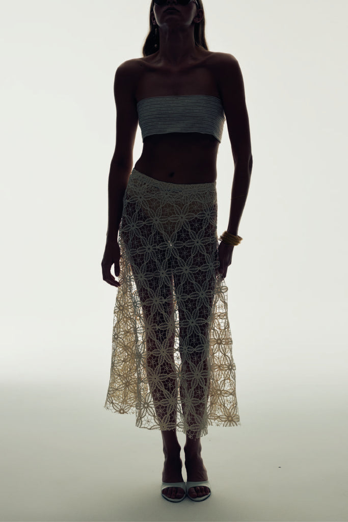 Clea etek, plajın zarif atmosferine uygun hafif düşük bel tasarımı ve kroşe kumaşıyla öne çıkıyor. Bu etek, plaj günlerinde rahatlığı ve şıklığı bir araya getiriyor. Transparan görünümüyle hafif ve havalı bir his verirken, sahil boyunca yürürken veya plajda güneşlenirken sizi zarif bir şekilde tamamlar. Bikini veya mayo üzerine giyerek plaj stilinizi tamamlayabilir ve yazın sıcak günlerine şıklığı taşıyabilirsiniz.